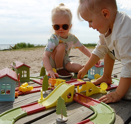 Our new Ecoline City Stockholm is a playful tribute to our royal capital. The children create the city of their dreams and get a taste of living in the big city. Feel the pulse, the speed! But don’t worry, the fire station and the police station keep everyone safe at night. The set includes 3 cars, 3 figures, 1 bridge, 4 traffic signs, 4 trees, 3 buildings, and 38 road sections.