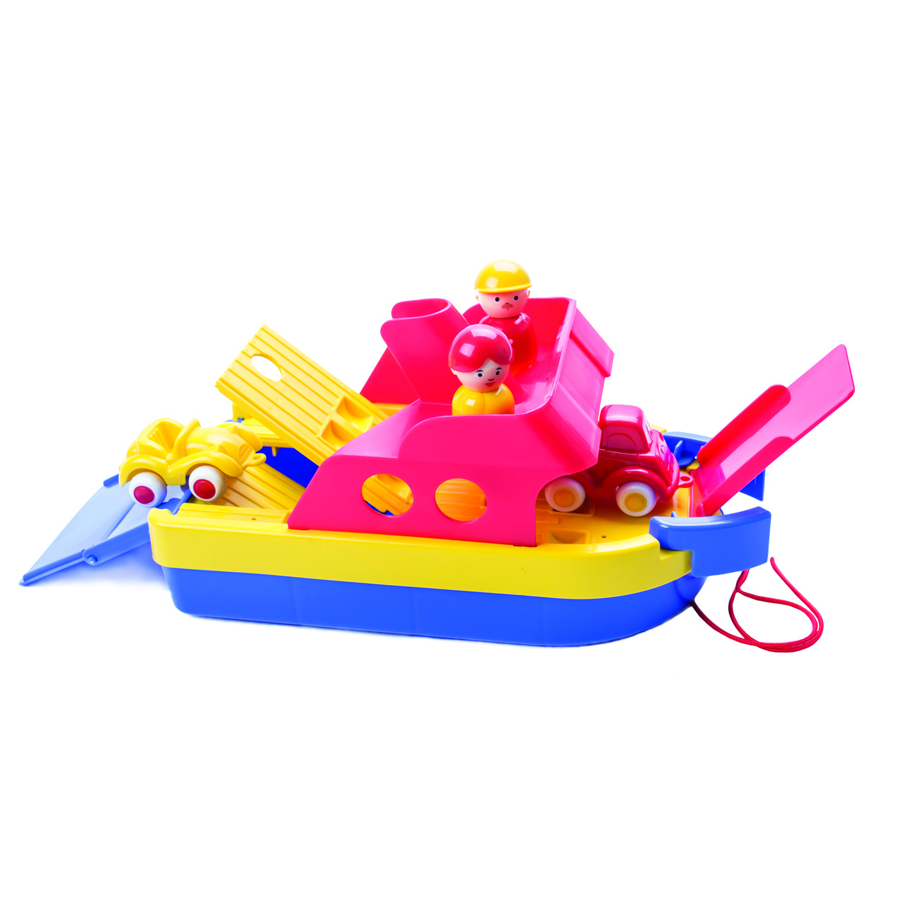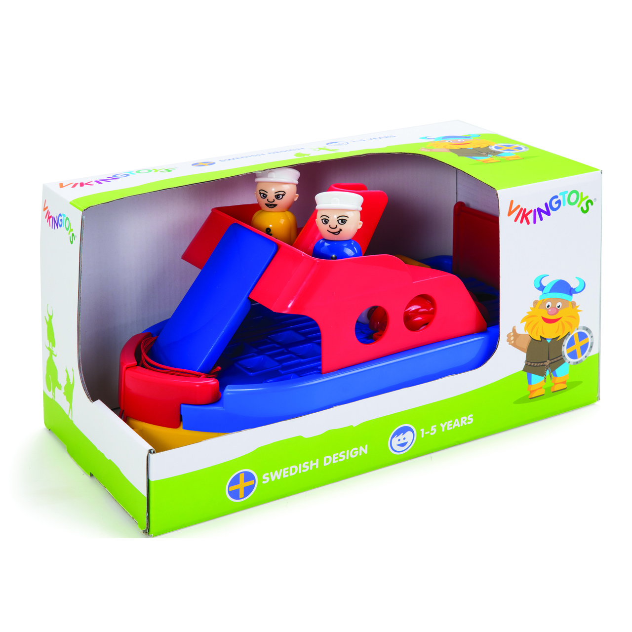 Wouldn’t it be fun to be captain on a boat? You can be just that with the Jumbo Ferryboat! Included in the nice package are also two travel figures much eager to breath the salty air. There’s room for their cars on the ferry as well, so they can make little trips whenever you lay to.