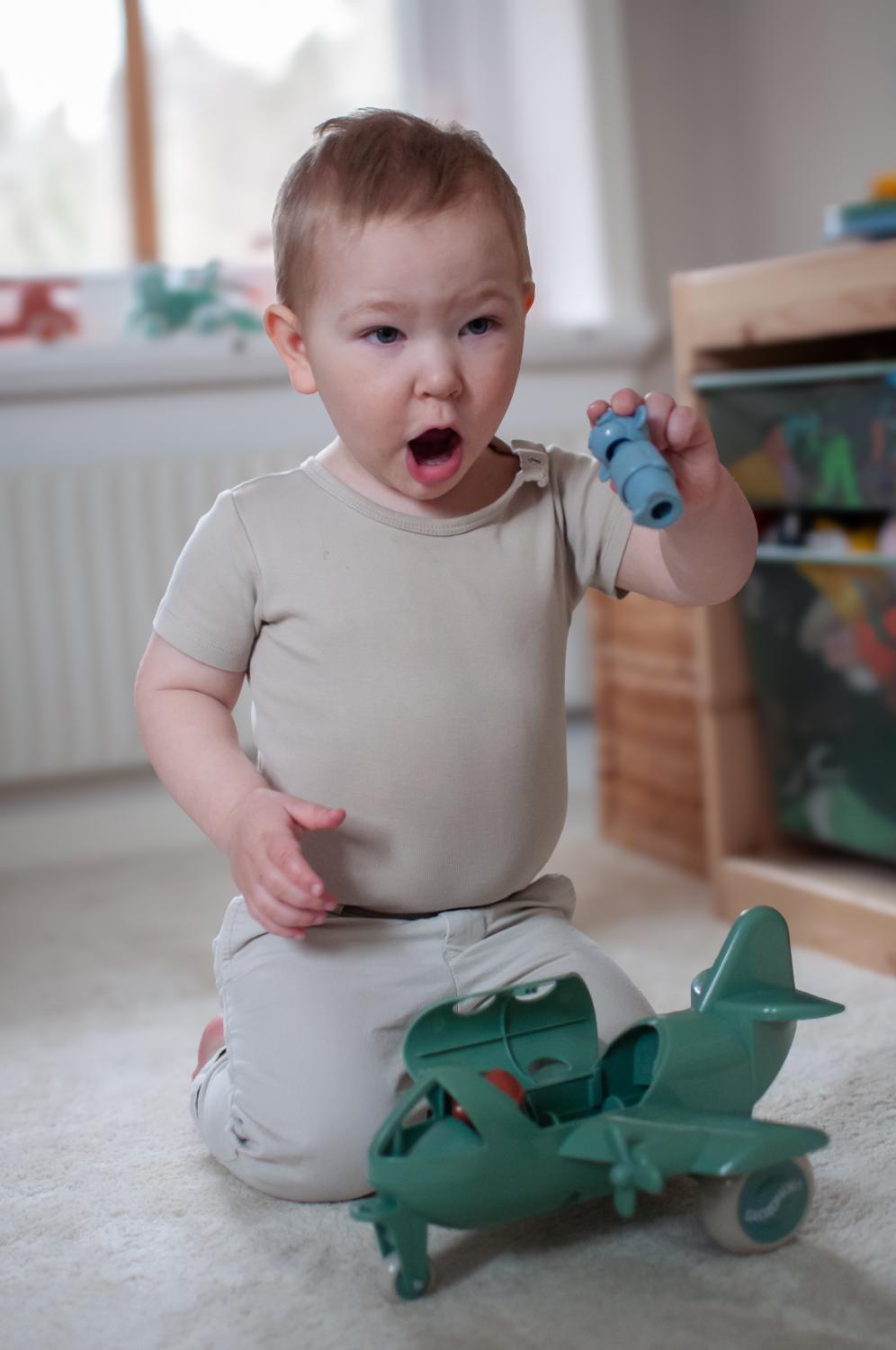 Let's introduce our Re:line Jumbo Airplane - ready to take off and fly into great playtime. With this durable aircraft, passengers can have a truly entertaining flight. We can fly around the world, over the Arctic to see polar bears, to Australia, and jump around with Kangaroos. Only the imagination sets the limits!